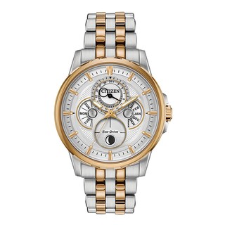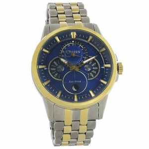 View Citizen Calendrier Moonphase Men's Watch Bu0054-52L Images. Sophisticated and new, this timeless calendrier moonphase men's watch from citizen features analog month/day/date dials and is water resistant to 100m. The deep, indigo blue dial makes a splash with four subdials that detail the month, day, date, and moonphase.